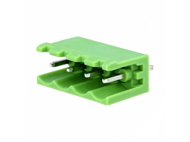 5mm Pluggable Terminal Block • 3 way • 12A – 250V • Right Angled Pins • Green