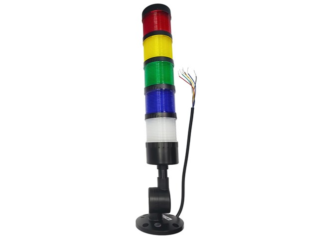 Industrial LED Tubular Econo Beacon Lamp 1 Layer Flashing Red/ Continous Yellow & Green/Buzzer 24VDC NPN with Foldable Mounting Base 64mm Ø x 215mm with Flylead IP20