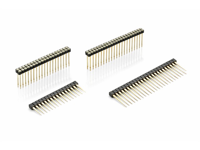 2.54mm Interconnect PCB Strip Socket Connector • 64 way in Single Row • Straight Pins, Contact Length = 15.3mm • Tin/Gold Plated