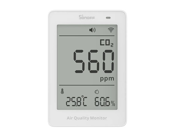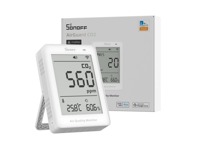 Wi-Fi/Matter CO₂ Monitor with NDIR Sensor, Reports CO₂, Temp, Humidity, 5 S Updates, USB-C Powered, Integrates with Matter Smart Home, Alerts on Thresholds, Data Logging [SONOFF SAWF-08P-AIRGUARD CO2 MON]