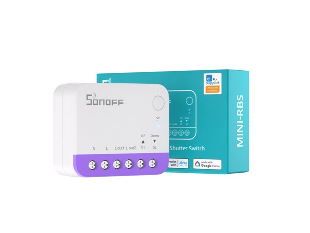 A Compact Matter‑Over‑Wi‑Fi Smart Roller Shutter Switch for 100–240 V Motors (≤1 A), Offering Precise Percentage Curtain/blind Positioning, Scheduling, Calibration, Voice/APP Control and Seamless Matter Ecosystem Integration. [SONOFF MINI-RBS ROLLER/SHUT SWCH]